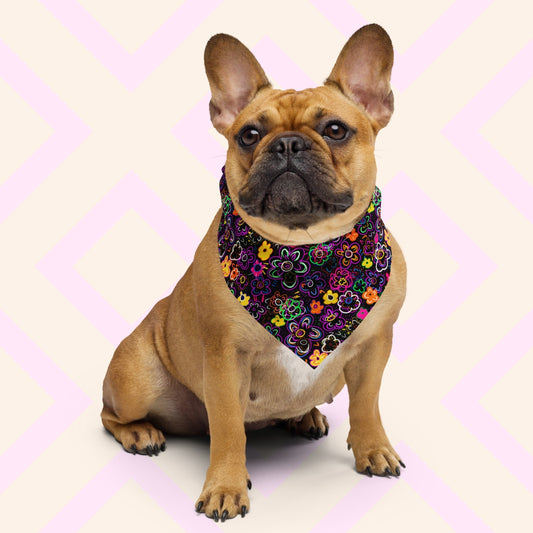 Add a little magic to your life with In the Midnight Garden! It's a print full of contrasts, with hand-drawn neon flowers shining brightly on a dramatic black base. It’s modern, bold, and ready to turn heads wherever you take it.
