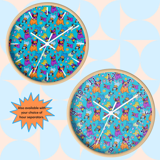 - French Bulldog Design: Featuring cute Frenchies playing with tennis balls, this clock brings a fun, dog-loving vibe to any room.