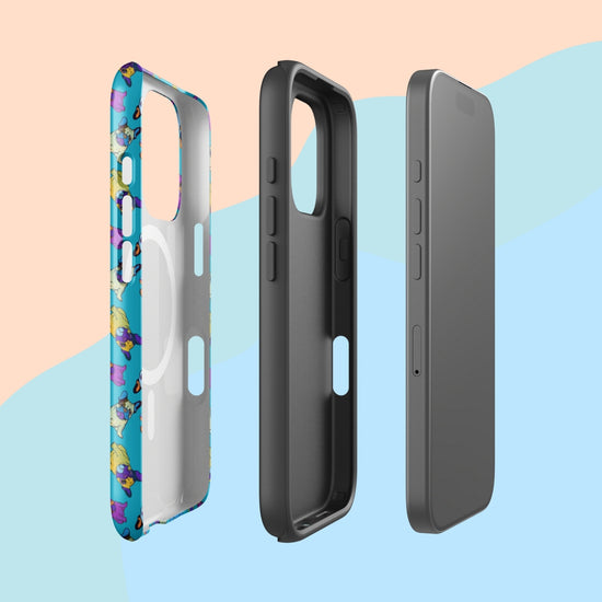Frenchie lovers, this one's for you! The Frenchie Fetch, Set, Match iPhone MagSafe Case is bursting with colour and personality, featuring playful French bulldogs mid-fetch on a vibrant turqoise background. If your phone could wag its tail, it definitely would.