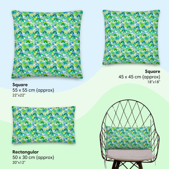 Soft watercolour rainbows in shades of green and blue make the Green Rainbow Cushion a fresh and vibrant addition to any space. Whether you’re after a standout couch cushion, a cosy sofa cushion, or a rectangle cushion to bring a calming touch to your favourite chair, this green cushion is ready to brighten up your home. Available in both square and rectangle cushion sizes, it’s perfect for mixing, matching, and adding a touch of colour without overpowering your décor. If your cushion covers need a refresh, this one’s ready to bring soothing, nature-inspired colour into your space!
