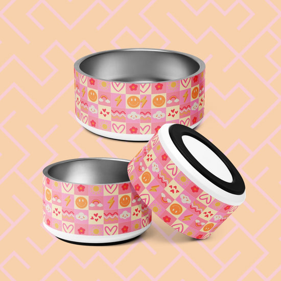 Bring sunshine to every meal with the Happy Smiles Sunny Days Pet Bowl! Featuring a bright checkerboard of smiley faces, hearts, rainbows, and sunshine, this cute pet bowl is made for pets who deserve a little extra joy at dinnertime. Whether your dog races over like they haven’t eaten in days or your cat takes their sweet time inspecting every bite, this bowl is ready for them.