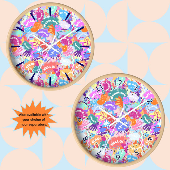 - Global Greetings: Featuring "Wominjeka," "Bonjour," "Hola," "Ciao," and "Kia Ora," this clock is all about welcoming everyone, no matter where they’re from!