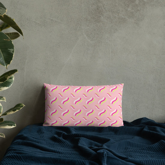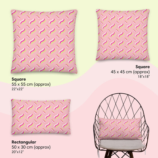 Inspired by the iconic biscuit, the Iced Vovo Cushion takes a sweet classic and turns it into bold, abstract design! Soft pinks and vibrant wavy details make this colourful cushion a standout wherever it lands. Perfect as a couch cushion, a statement sofa cushion, or a rectangle cushion for your favourite chair. Great for home, the office, waiting rooms, or classrooms—anywhere that could use a little extra colour and fun! If your cushion covers need a refresh, this one’s ready to bring the fun – and the yum!