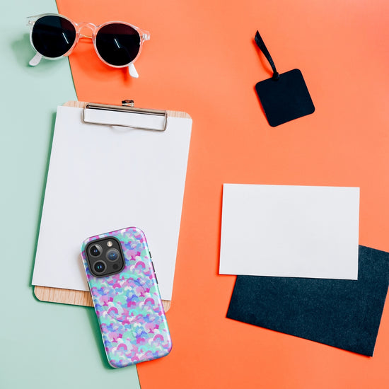 The Pastel Rainbow iPhone Case is a burst of soft pink, blue, and purple rainbows, overlapping in a colourful design that turns your phone into a piece of art. Perfect for those who love aesthetic phone cases, this Apple iPhone case blends vibrant style with everyday durability. Whether you’re after the best iPhone case for colour lovers or just want a colourful phone case that makes you smile, this one delivers in both looks and protection.