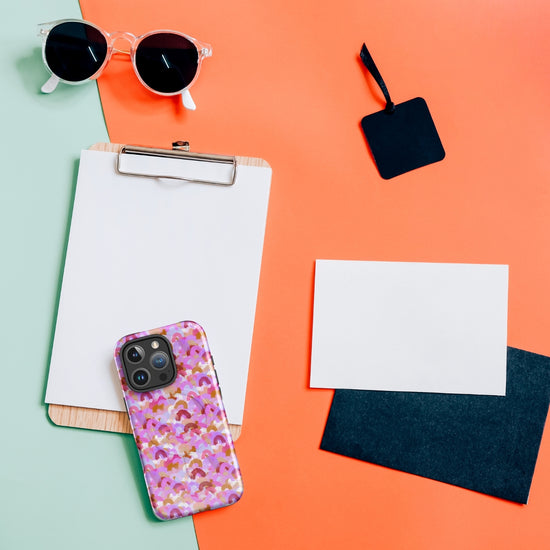 The Pink Rainbow iPhone Case is a colour-lover’s dream, blending warm pinks, soft peaches, and deep berry tones into a layered, abstract rainbow design. This colourful phone case is equal parts art and protection, turning your device into a statement piece while keeping it safe from everyday bumps and drops.