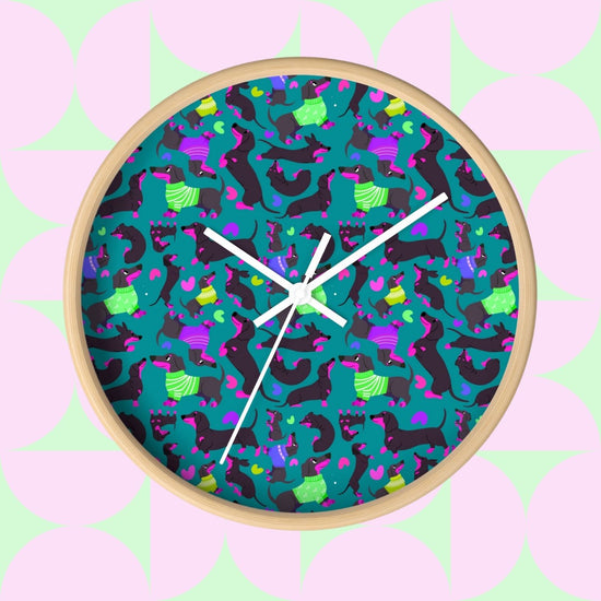 - Dachshund Delight: Colourful, quirky dachshunds dressed in bright jumpers make this clock the perfect playful addition to your walls.