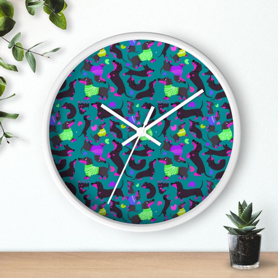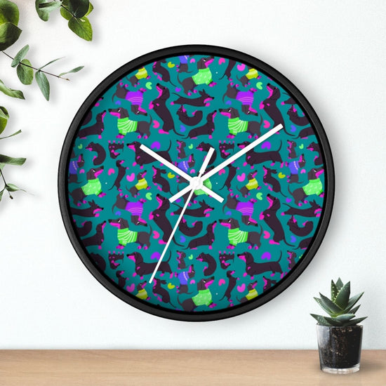 Get ready to add some doggone style to your space with the Silly Sausages Wall Clock! This modern wall clock features adorable black-and-pink dachshunds rocking colourful jumpers, bringing a burst of fun and personality to any room. Whether you choose a wooden wall clock, white wall clock, or black wall clock, this clock is sure to keep you on time with a side of sausage dog charm!