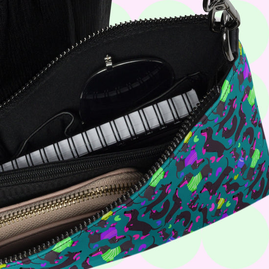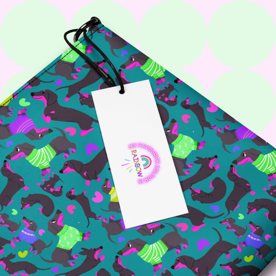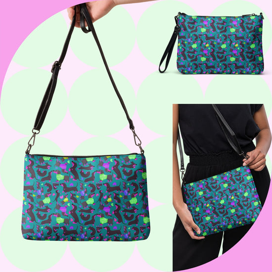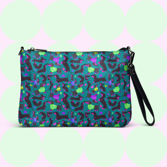 The Silly Sausages Three-in-One Bag is a colourful bag that’s long on style and big on personality! Featuring a fun sausage dog design, this bag is perfect for dachshund lovers who like their accessories as bold as their pups. Whether you’re in the mood for a sleek clutch bag for women, a statement handbag, or a hands-free crossbody bag, this little number is as versatile as a dachshund is long—just swap the adjustable, removable wrist and shoulder straps to suit your vibe.