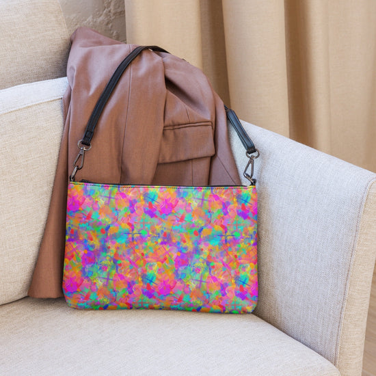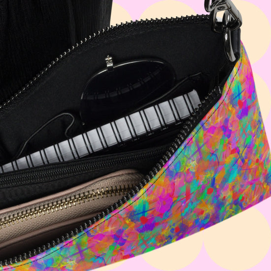 The Splotches and Crosses Crossbody Bag is a colourful bag bursting with bold energy! With an abstract mix of vibrant splashes and striking crosses, this rainbow bag is designed for those who love statement style. Whether you're after a sleek clutch bag for women, a standout handbag, or a hands-free crossbody bag, this versatile piece lets you switch up your look in seconds—just adjust or remove the wrist and shoulder straps to match your vibe.