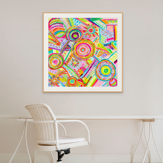 Add a burst of vibrant energy to your space with the Summer Sorbet Fine Art Print! This professional reproduction of my original Summer Sorbet painting, created by Melbourne artist Carly Wood (that's me!), is an absolute must-have for any colourful art lover. Painted in acrylic on canvas in 2024, this artwork is bursting with tropical hues and bold patterns that will brighten up any room. Looking for art for sale in Melbourne? Look no further—this print will inject fun and personality into your walls!