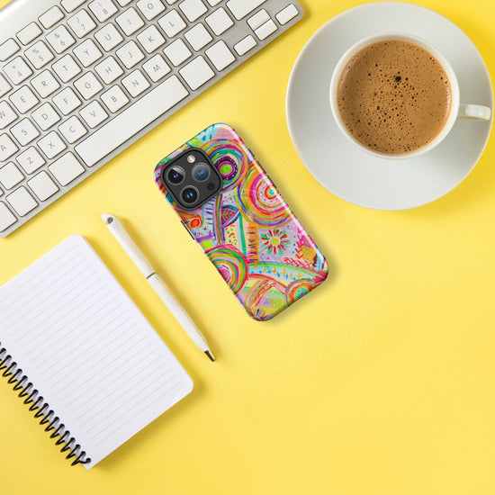 - A vibrant work of art – Featuring my Summer Sorbet painting, this aesthetic phone case is a bold mix of scattered circles and expressive abstract details.