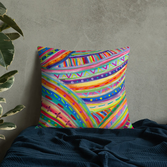 Add a burst of colour and creativity to your space with The Rainbow Connection Cushion! Featuring my The Rainbow Connection painting, this rainbow cushion brings vibrant hues and energy that will instantly brighten any room. Whether it’s adding bold style to your sofa cushion, becoming the focal point of your couch cushion collection, or turning your favourite chair into a statement piece with a rectangle cushion, this cushion brings art and personality to your space.