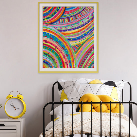 Printed on Ilford Galerie Textured Cotton Rag 310gsm using giclee techniques, this fine art print maintains the painting-like texture and depth of the original work. Whether you're seeking art for sale in Melbourne or wondering where to buy art in Melbourne, The Rainbow Connection is a unique choice. Available in three sizes, from 10x12" to 75x90 cm, it offers flexibility to suit your wall's proportions. Feel free to reach out for custom sizes.